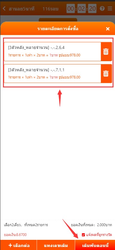 4. คลิกที่ปุ่มสีฟ้าและตรวจสอบรายการแทง จากนั้นกด “เดิมพันตอนนี้”