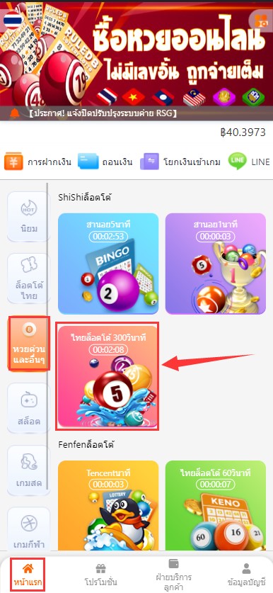 1. ไปที่ “หน้าแรก” เลือก “หวยด่วนและอื่นๆ” จากนั้นเลือก “ไทยล็อตโต ้300 วินาที”