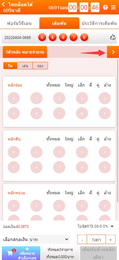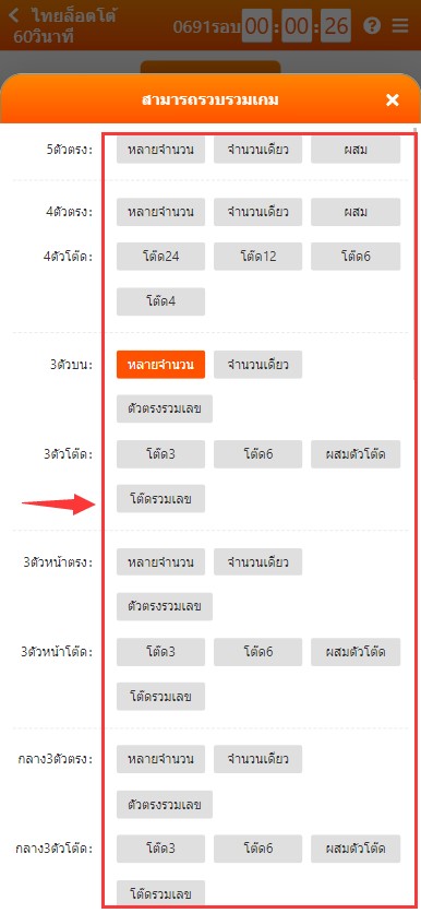 2. คลิกที่ ปุ่มสีส้มที่เป็นสัญลักษณ์ > ตามรูป เพื่อเลือกประเภทการแทง