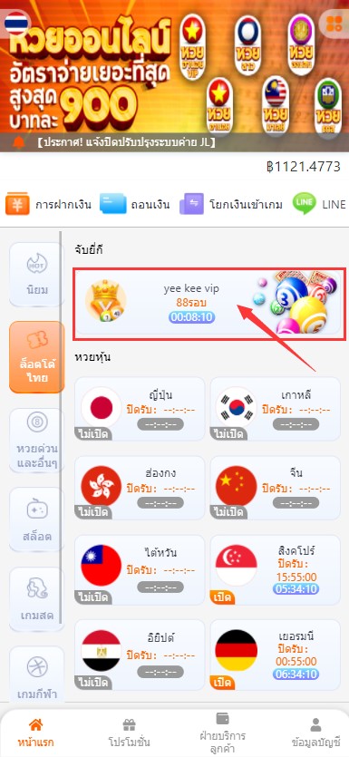 1. ไปที่ “หน้าแรก” เลือก “ล็อตโต้ไทย” จากนั้นเลือก “หวยยี่กี”