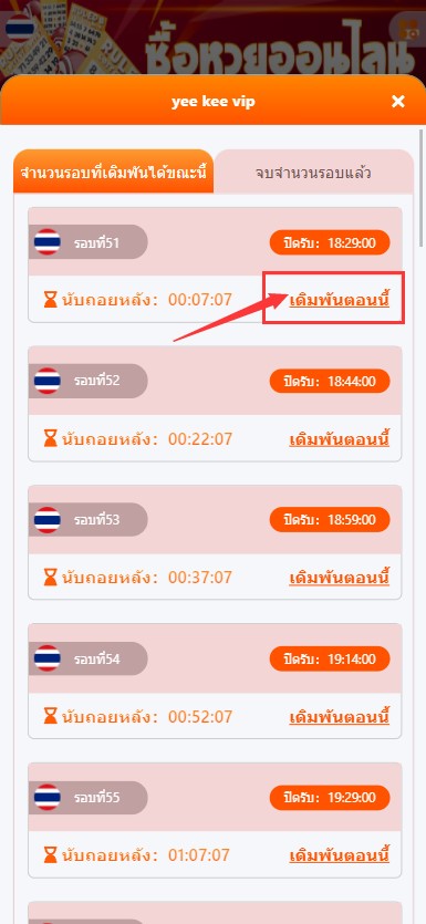 2. เลือกรอบที่ต้องการ จากนั้นคลิก “เดิมพันตอนนี้”