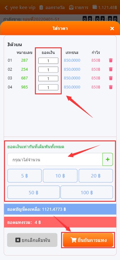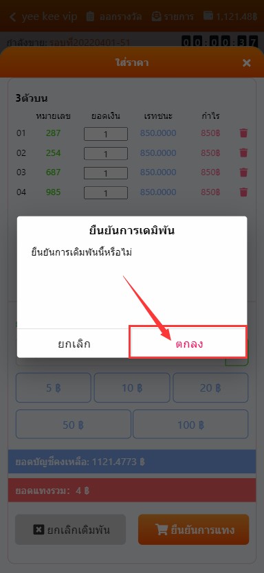 4. ใส่ยอดเงินที่ต้องการ จากนั้นกด “ยืนยันการแทง”