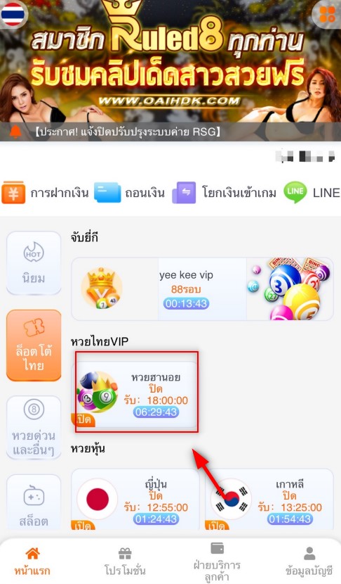 1.ไปที่ “หน้าแรก” เลือก “ล็อตโต้ไทย” จากนั้นเลือก “หวยฮานอย”