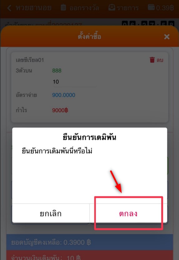 6.ตรวจสอบข้อมูลอีกครั้ง แล้วกดปุ่มยืนยันการเดิมพัน